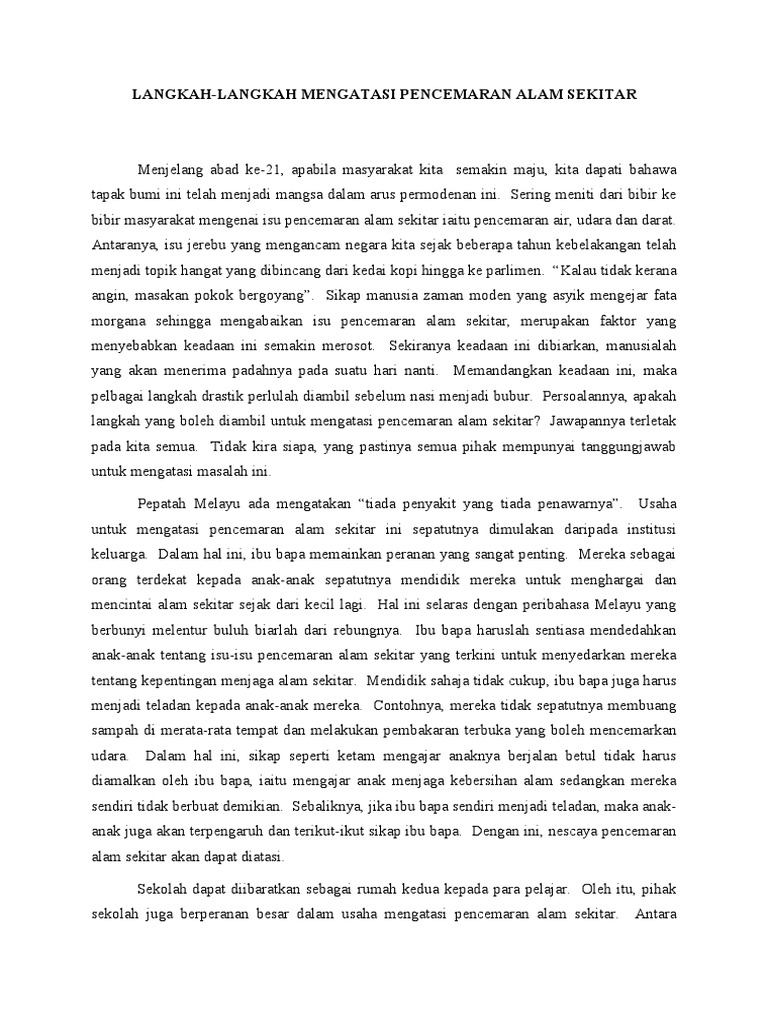 Namun, kemajuan dalam sektor perindustrian telah di kecapi hari ini sedikit tercalar impak daripada. Sehubungan itu melalui pameran , pertandingan kuiz mengenai alam sekitar perlu seterusnya ,semua negara yang mengalami masalah pencemaran alam sekitar haruslah bekerjasama menangani isu pencemaran ini. Pencemaran tanah banyak terjadi di sekitar kita. Definisi pencemaran alam sekitar menurut kamus dewan bahasa dan pustaka (dbp) menyatakan bahawa pencemaran adalah suatu perbuatan yang m. Langkah mengatasi pencemaran alam sekitar.